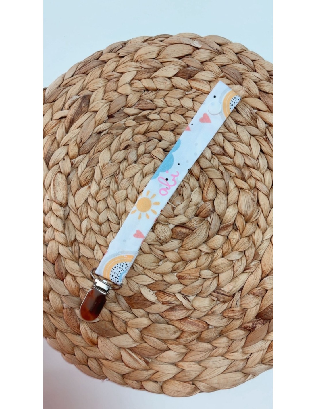 Nuestro chupetero para bebé es un accesorio práctico y seguro, pensado para tener siempre a mano el chupete, mordedor o pequeño juguete del bebé.